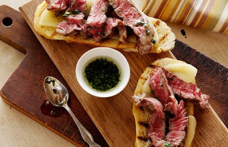 Find all the pictures we have received for this Mini Open Faced Steak Sandwiches on Garlic Bread with Aged Provolone and Parsley Oil recipe.