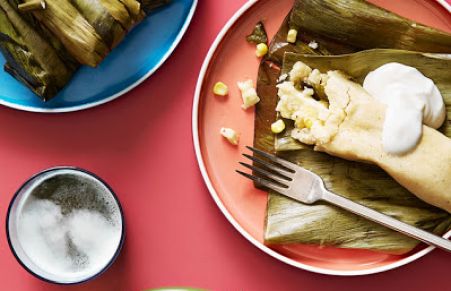 You can find the banana leaves used to wrap these delicious Tamales with corn, roasted poblano peppers and cheese at Asian or Latin American markets. To serve, set tamale packets on plates, unwrap and drizzle with crema.
