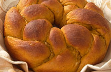 This mahogany-gold wreath is dense and moist, mildly spicy, and utterly tasty. The recipe makes two loaves; enjoy one, and give the other away. Or use the other to make Pumpkin Bread Pudding.