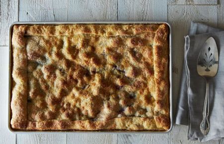 A slab pie is simply a shallow pie that's made in a rimmed baking sheet, usually a jelly roll pan. It feeds more revelers than a standard 9-inch pie will, with less mess and fuss.