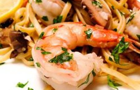 Well-rounded seafood and pasta dish. Good with any pasta; angel hair is less filling