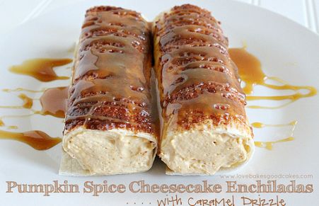 Pumpkin Spice Cheesecake Enchiladas with Caramel Drizzle