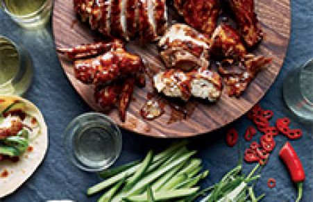 F&W’s Kay Chun rubs an Asian-spiced butter under chicken skin before roasting to create an incredibly juicy and delicious bird.