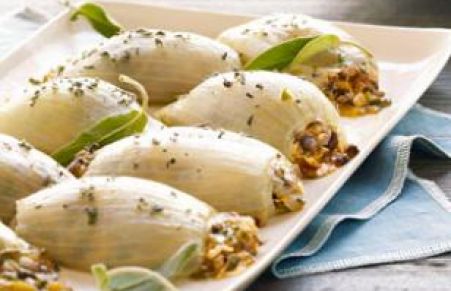 In this recipe for stuffed onions, mild onion layers are filled with a tasty mushroom and Cheddar cheese blend spiked with sage and a splash of dry sherry. Serve as a vegetarian main dish for 4 or as a vegetable side dish for 8.