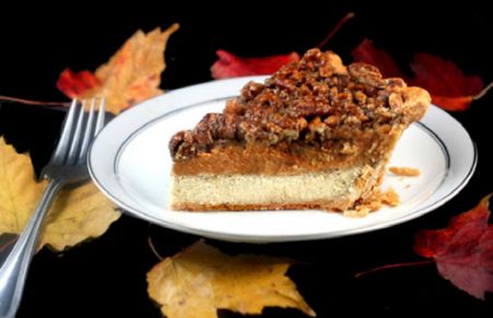 Three pies in one. No choosing, no juggling a slice of cheesecake, pecan pie and pumpkin pie on one plate, trying not to look silly as you take bites of each at once.