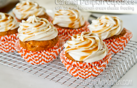 Caramel Pumpkin Cupcakes with Caramel Cinnamon Cream Cheese Frosting