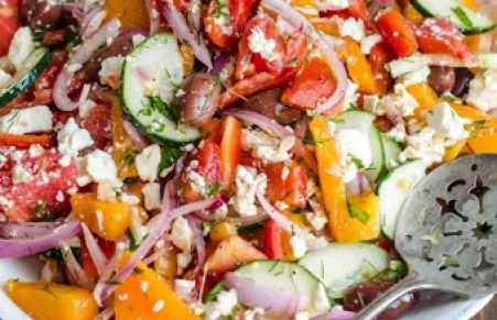 This colorful and refreshing salad is perfect for a healthy snack or side dish.