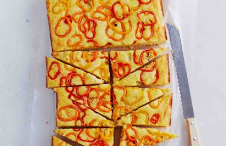 Cheese and sweet pepper cornbread is pleasing to look at and also a treat to eat! Dig in!