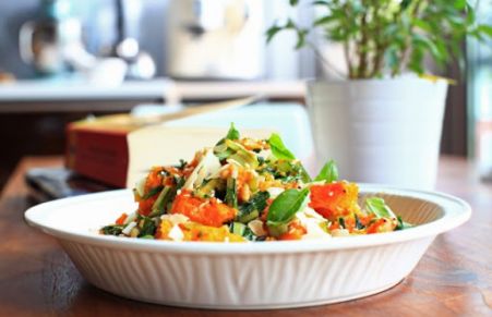 This recipe for roasted onion, butternut squash, and fig salad with maple-mustard balsamic dressing is great at your Thanksgiving meal, or as an autumn lunch.
