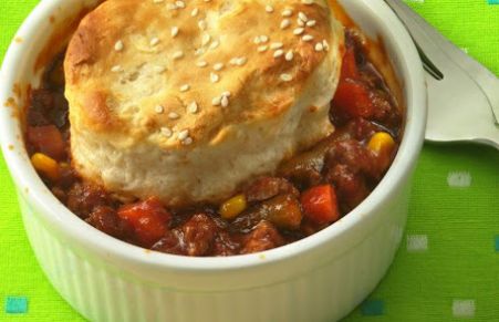 Top a tasty beef filling with a Pillsbury® Oven Baked biscuit for a quick dinner for two.