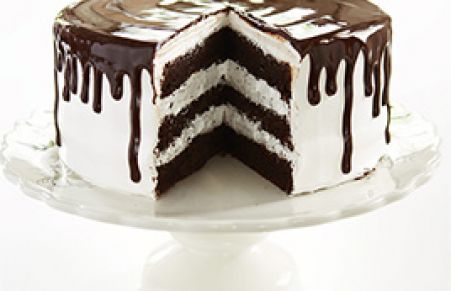 This rich chocolate butter cake is layered with fluffy seven-minute icing and topped with a drippy chocolate glaze. We added light corn syrup to the chocolate glaze so that it clung tightly to the cake and had a glossy texture. Using an offset spatula ensured the icing on our Chocolate Shadow Cake spread in an even layer.
