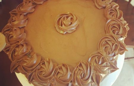 A dark chocolate cake with a creamy peanut butter filling and coated in the best dark chocolate buttercream.