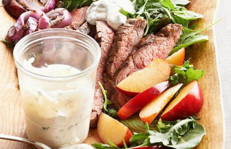 Flank Steak & Plum Salad with Creamy Chimichurri Dressing