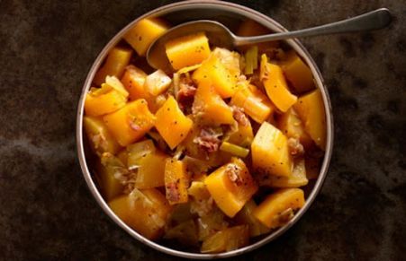 BITTERSWEET SQUASH WITH PANCETTA AND LEEKS