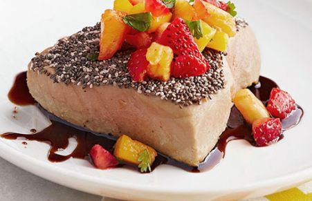 Chia-Crusted Oven-Roasted Tuna with Mango Fruit Salsa