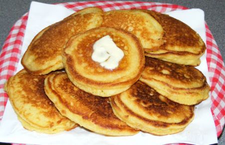 These little cornbread cakes are pan cooked basically like you would pancakes and served with anything you would usually serve cornbread with. They can also be dusted with confectioners sugar and drizzled with maple syrup for breakfast. I used packaged Jiffy cornbread mix for these.