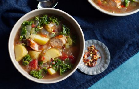 Roasted Tomato, Kale, Sausage, and Potato Soup