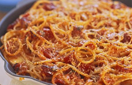 Spaghetti Pepperoni Pie - Can be Vegetarian