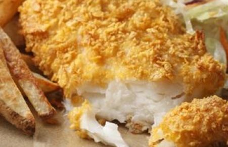Fish and chips are traditionally sold wrapped in paper to soak up all the grease—not a good sign. To cut the calories in half and reduce the fat, we coat the delicate fish in a crispy cornflake crust and then bake it along with sliced potatoes. Serve with: Coleslaw and malt vinegar or lemon wedges.