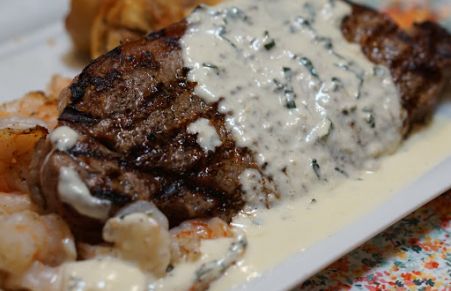 The ultimate surf and turf - steak with shrimp and a Parmesan sauce. Try this sauce with grilled chicken, too. If you like Applebee's Copycat Shrimp and Parmesan Steak dish, you'll love this recipe.