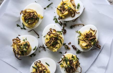 Deviled eggs topped with a crispy shallot gremolata are packed with zesty flavor and are sure to be a hit at your next potluck. Deviled Eggs with Crispy Shallot Gremolata are filled with the rich, crispy flavors of shallots, fresh herbs, lemon juice and zest, and Dijon mustard. Serve these on your next appetizer buffet during any celebratory occasion and watch as your guests rant and rave over these flavorful bites.