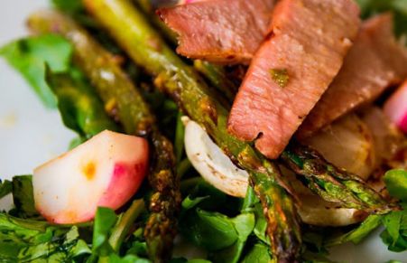 Lemongrass Glazed Tuna on Grilled Asparagus and Turnip Salad