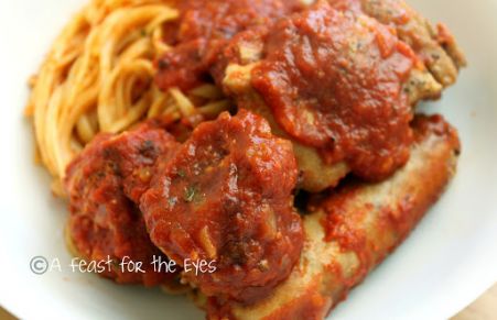 Being a native Californian, with a combination of German and Mexico roots, I'd never heard of-- yet along-- tasted "Sunday Gravy". From my research, I've learned it's an Italian-American dish. The "gravy" is more of a ragu and is served with various meats. There are many variations of this recipe, to be found in so many Nonna's kitchens. Braciole, (a pounded out piece of beef, that is stuffed with ingredients like raisins, pine nuts, cheese and prosciutto) is a traditional meat ingredient for Sunday Gravy. It's also a lot of work to make, so America's Test Kitchen came up with a recipe that is easier to make, without sacrificing flavor. Instead of simmering the sauce for hours, on the stove, ATK has converted their recipe version to slow cook in the oven-- which requires less stirring and maintenance. I took this one step further, and used my electric pressure cooker. I was able to cook the Sunday Gravy in less than an hour, instead of three hours! Preparing Sunday Gravy does involve about an hour of prep work, no matter which process you use. The end result is worth the effort, especially if you love pasta as much as we do. I will provide directions for stovetop cooking, in case you don't own a pressure cooker (and you should, as I use mine often with great results). Recipe adapted from America's Test Kitchen Season 10. (Click on the recipe source to see how I made this, on my food blog "A Feast for the Eyes.)
