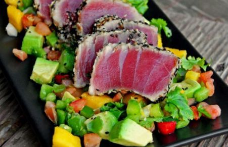 Seared Sesame Tuna & Grilled Avocado-Mango Salsa