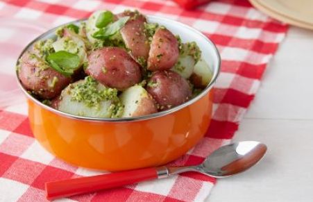 Not your traditional mayonnaise and mustard based potato salad, but this is one that they'll ask you to bring again! The pesto is perfect with the potatoes!