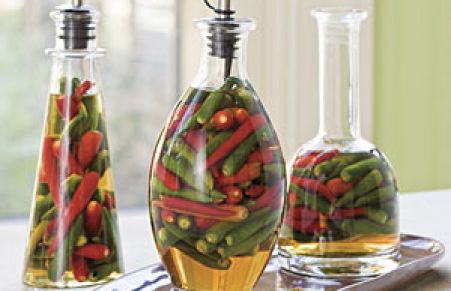 Use with caution, vinegar is a great solvent for capsaicin so all the heat from the peppers will go right into the vinegar. This also pickles the peppers (Just like Peter Pipper) so you can take out of of the jar, cut off what you need and save the rest in the vinegar for another time.