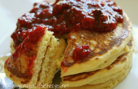 Cornmeal Pancakes with Rasperry Compote
