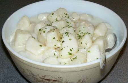 These tender potatoes are served with a creamy white sauce. This is a great side dish and will go with any entree.