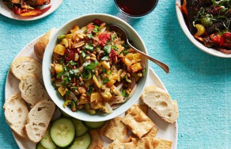 This unusual caponata is a sort of a potato salad, but those Sicilian agrodolce (sweet-sour) touches take it to a different realm. Olives and capers give it an addictive salty punch. You can serve it just as you would any other potato salad, with grilled meats and fish and other vegetables sides. It’s also nice served alongside a classic eggplant caponata.