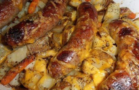 This dish is so easy to put together, and so tasty! Chunky potatoes combine with carrots, onions, and whole links of Italian sausage and seasonings and bake for an hour.