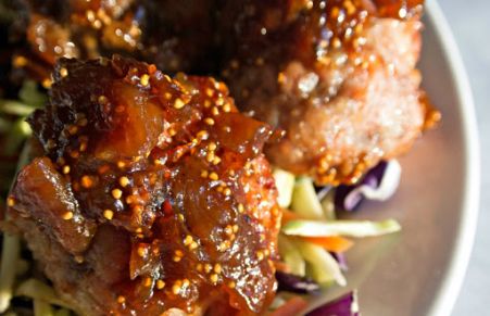 Delicious lamb and pork meatballs kissed with a fig sauce.