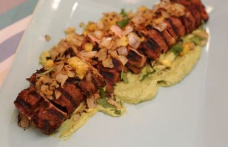 Grilled Pork Tenderloin al Pastor with Avocado Crema