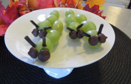 Add these creepy little guys to your next Halloween buffet! Healthy alternative to all of the sugary treats around the house at Halloween time!