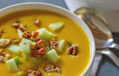 Pumpkin and apple blend perfectly in a comforting fall soup. The recipe starts with fresh pumpkin and apples, then adds spices and cream for bold, fresh flavor.