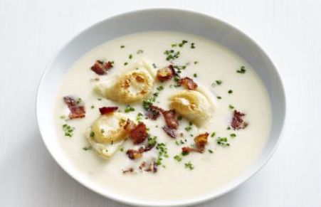 Potato-Leek Soup with Mini Pierogi