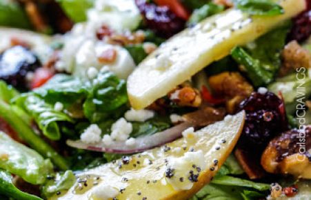 APPLE CRANBERRY BACON CANDIED WALNUT SALAD WITH APPLE POPPY SEED VINAIGRETTE