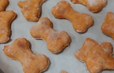 Easy to make treats for your dog. You know you're feeding her with a healthy dog treat, where sweet potatoes and applesauce are the main ingredients.