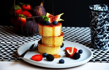 These Japanese-styled pancakes, with the adorable moniker of hotto kēki in Japanese, are denser and more compact than regular buttermilk pancakes. Their distinctly thicker discs provide more cake in one bite, resulting in a satisfying mouth-feel without compromising on fluffiness. Paired with figs that enhance the sweetness of the hotcakes and the citrus zing from the berries for contrast, this is a lighter option if you want pancakes for breakfast without the subsequent waves of comatose that the usual pancakes bring.