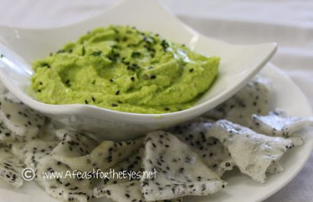 Here's a fun twist on hummus-- with an Asian twist of wasabi for some Japanese flavor. The cilantro and lime adds a bright flavor (substitute with parsley if you don't like cilantro).