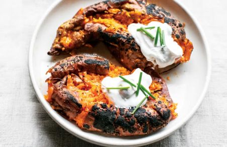 Slow Roasted Sweet Potatoes with Garlic Labneh
