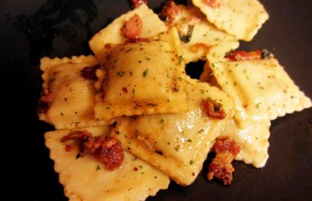 Beef Ravioli with Bacon Butter Sauce