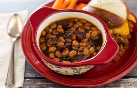 Despite being called baked beans. most baked bean dishes are slowly simmered. This pressure cooker recipe cuts 2/3 off the cooking time. The sweet, smokey, sticky sauce is full of great flavors and is the perfect accompaniment to your summer grilling adventures.