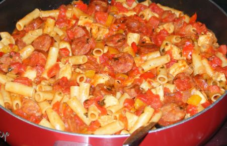 A spicy skillet meal made with smoked sausage, chicken breasts, ziti or penne pasta, red and yellow bell peppers, onions, garlic, canned tomatoes, chicken broth, and plenty of Cajun seasonings to spice up your weekly dinner recipe rotation. The creole flavors of Louisiana come together in this dish and dance on your tongue like jazz in the streets. Pair with a lightly dressed side salad or enjoy this meal on its own.