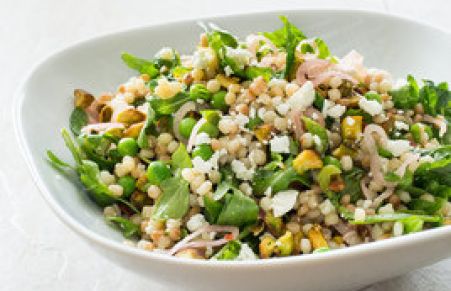 Israeli Couscous with Lemon, Mint, Peas, Feta, and Pickled Shallots