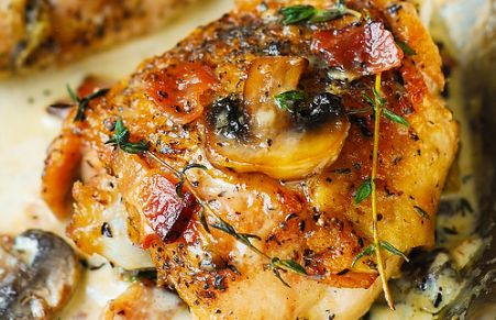 Chicken Thighs w/Creamy Mushroom and Bacon Sauce