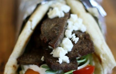 When it came time to eat (and that could NOT come soon enough), I cut thin strips, then browned them in a reasonable amount (okay, indecent amount) of ghee. The smell was driving me wild. Garlicky, oniony, herbed, oniony, beef and lamb meatloaf crisping in was was essentially browned butter? Ugh. It’s making me crazy hungry just to think about it now. My house smelled like a Mediterranean eatery! The meat came out of the frying pan and was given a brief cool down rest before being piled into a flat-bread pita with some salad greens, chopped cherry tomatoes, sweet onion slices, cucumber yogurt sauce, crumbled Feta cheese, smashed Greek olives, and a drizzle of Greek dressing (recipe coming tomorrow!). I folded it up, wrapped it in foil to keep all those mouthwatering components together and sunk my teeth into one of the best gyros I’ve ever had. I had done it. With a little planning, I could have them whenever I wanted. As for the guys, they’re now just as obsessed as I am. They ask for the crispy meatloaf strips at regular intervals. I am more than happy to oblige.